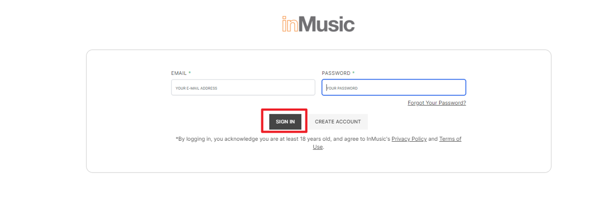 - Click on Let's Go! and your browser window will open to sign into your newly created inMusic Profile. Enter both your email address and password and click on "SIGN IN"