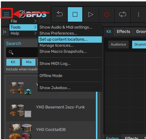- If you're yet to download/install the Software Centre, please see here: https://www.bfddrums.com/downloads.html