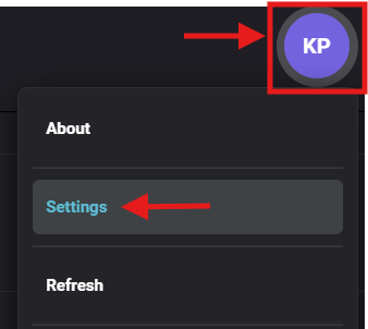 - Click on your initials and then click 'Settings'