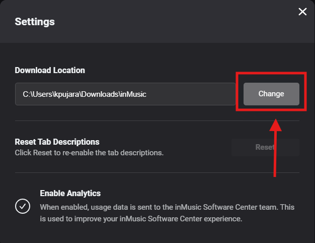 - Click 'Change' to specify a new download path