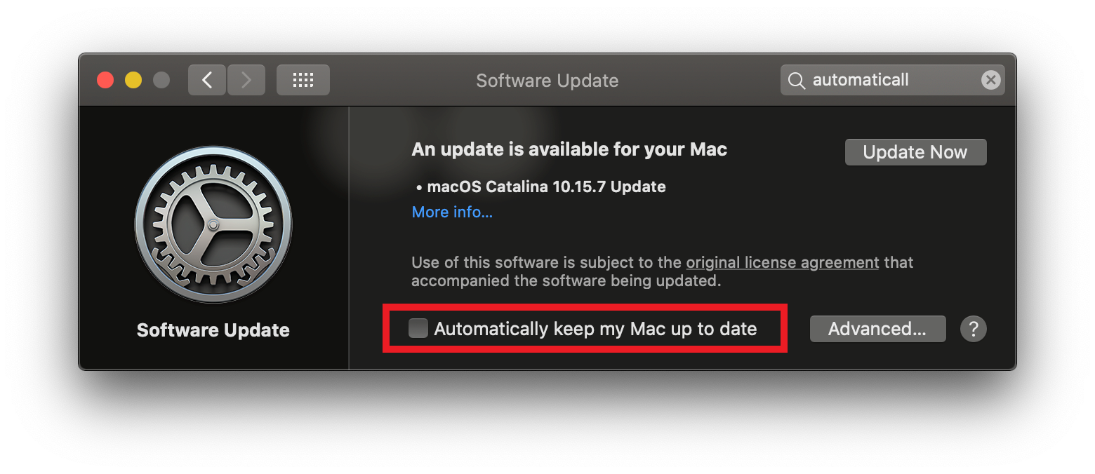 - Uncheck the box labeled Automatically keep my Mac up to date