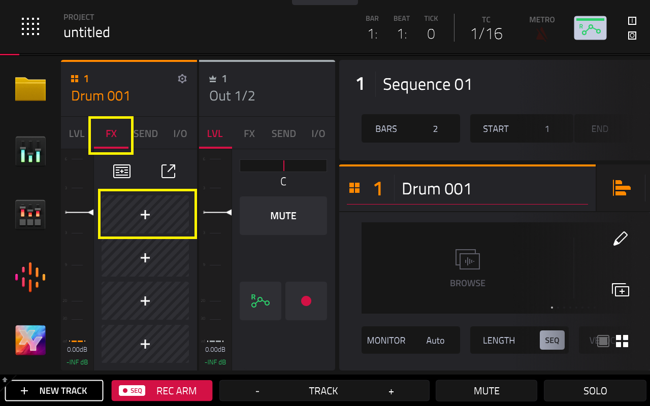 1. Go to the FX tab and tap the + icon