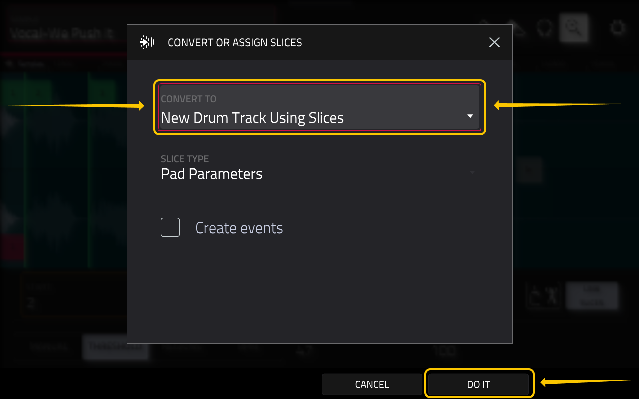 7. In the pop-up window, you will be given the option New Drum Track Using Slices; select Do It.