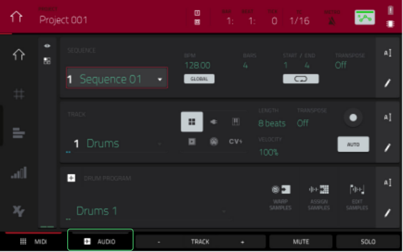 This MPC Series guide covers how to add audio files to your sequence, on an audio track. This can be useful for the playback of an audio file alongside other recorded material, or programs, as part of the sequence.