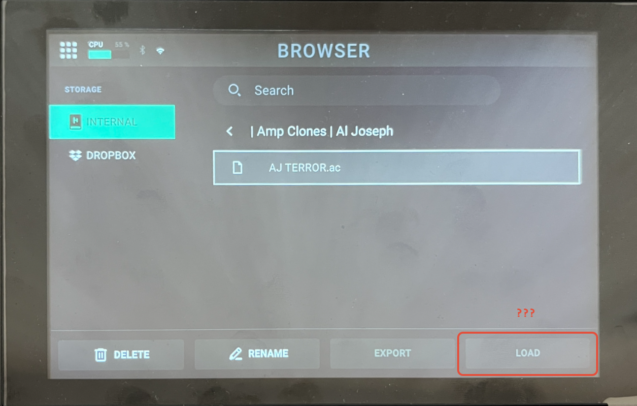 To load an amp clone on your HeadRush board, it's essential to first select an empty rig block. If you go directly to the Browse option from the menu without doing this, the board won't know where to place the clone, and the Load button will be greyed out.
