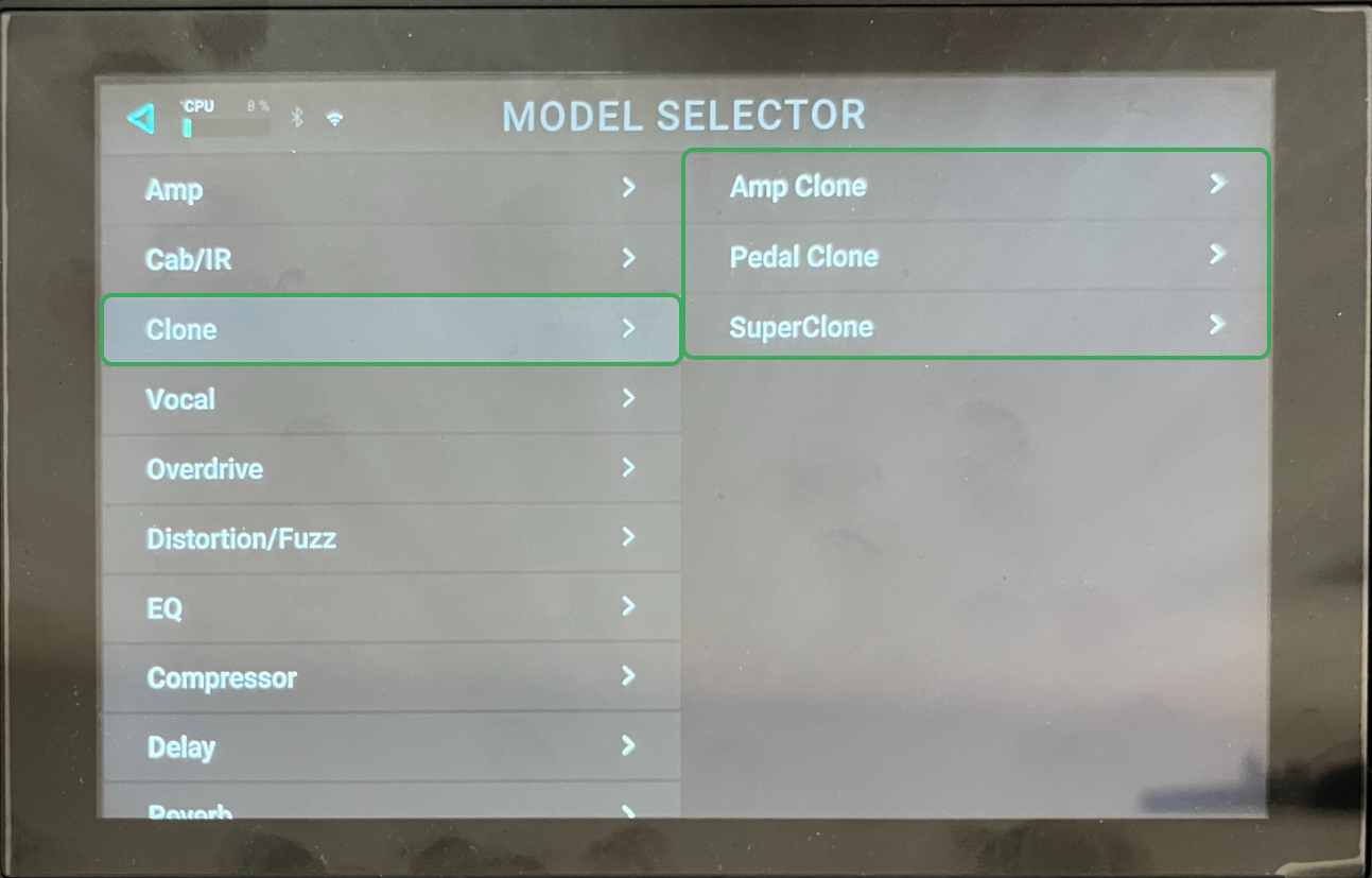 Instead, simply tap an empty block on the main rig screen. This action will open the model selector screen, where you can navigate to the Clone category and choose your desired clone.