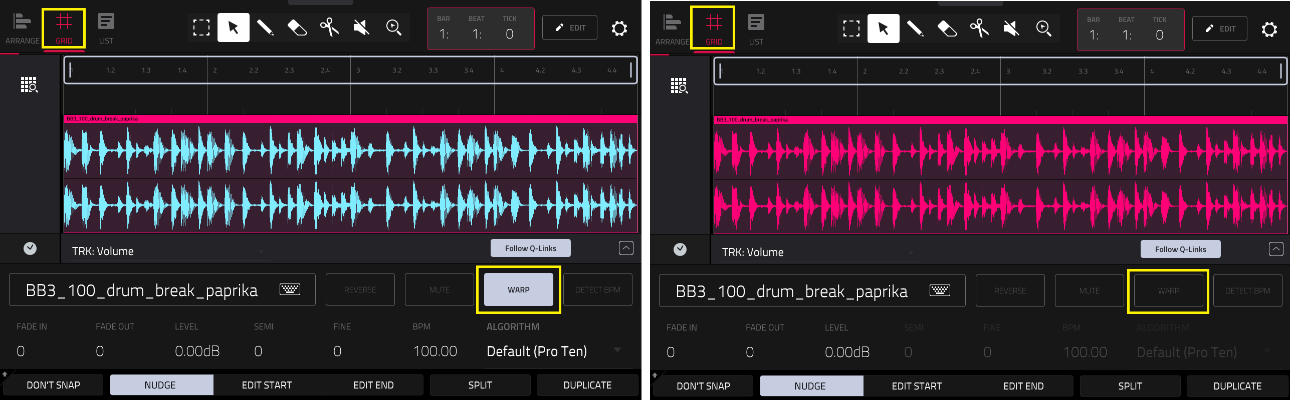 Audio Warp Algorithm: This determines how a sample is “warped” when you adjust the length of a sample without changing its pitch (e.g., the Warp function in Audio Region Edit Mode for audio tracks or in Track Edit Mode for Drum/Keygroup tracks).