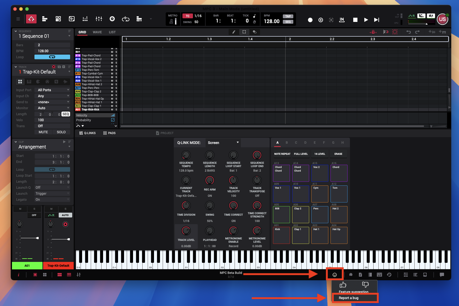 As this is a Beta build of MPC 3 Desktop and not a qualified full release, users have the opportunity to report a bug directly to our development team.