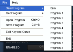 3. Press File > Send Program > Ram (makes it the default program) or Program 1-8 (saves it to a different program).
