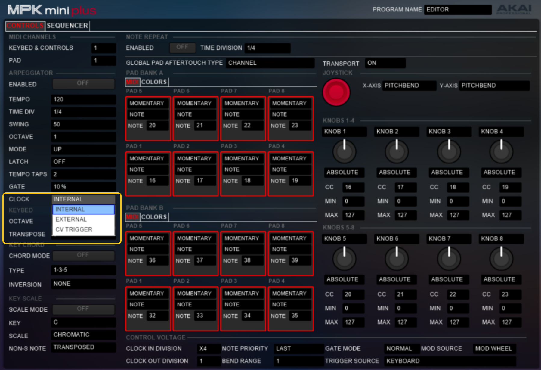 For example, in this case, I'm utilizing the MPK Mini Plus Editor: