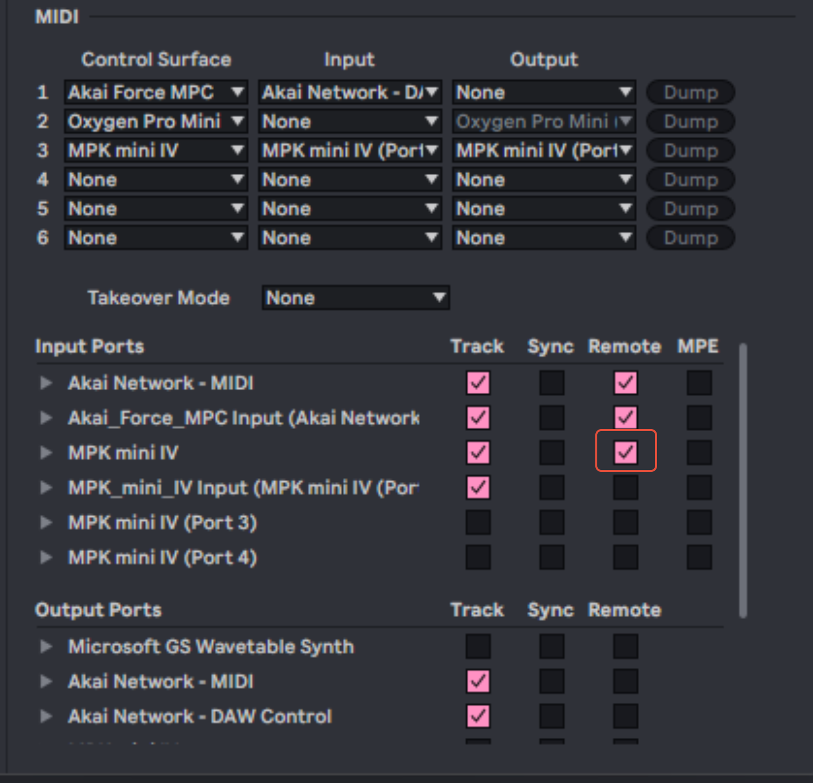 In the Control Surface drop-down menu, choose MPK mini IV.