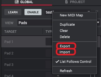 新しいMIDIマッピングが完成したので、これを.xmmファイルとしてエクスポートし、他のセッションや他のコンピュータに持ち込むことができます。